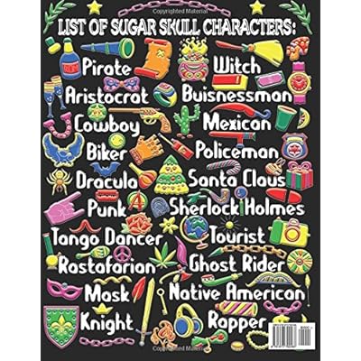 Are you looking for unique SUGAR SKULL designs to COLOR? This book contains 20 totally different HAND-DRAWN Sugar Skull CHARACTERS. Each of them has a THEMATIC BACKGROUND with many details to color. You will love them! Every picture is printed on ONE SIDE of a paper for easy removal. You can put it to the LETTER-SIZE frame to show your ARTISTIC WORK. For coloring you can use your favorite pens, pencils and markers. If you use markers we recommend to place a peace of paper behind the coloring page for non-bleeding through. Feel free to SHARE pictures with your art-works and to WRITE your review on AMAZON, FACEBOOK, TWITTER. Have FUN and ENJOY COLORING! The LIST of Sugar Skull persons you will find in this book: Pirate Aristocrat Cowboy Biker Dracula Punk Tango Dancer Rastafarian Mask Knight Witch Buisnessman Mexican Policeman Santa Claus Sherlock Holmes Tourist Ghost Rider Native American Rapper