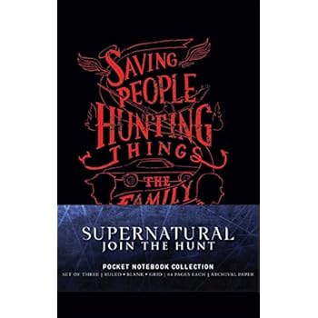 Celebrate your love of the hit show Supernatural with this stylish pocket notebook collection. Join the hunt and pay homage to the Winchester Brothers with this set of three handy pocket notebooks. Each one features a hilarious and iconic quote from the show and contains sixty-four ruled, blank, or grid acid-free pages that allow fans to chronicle their own adventures. This portable, unique collection is a must-have for any enthusiast of Supernatural.